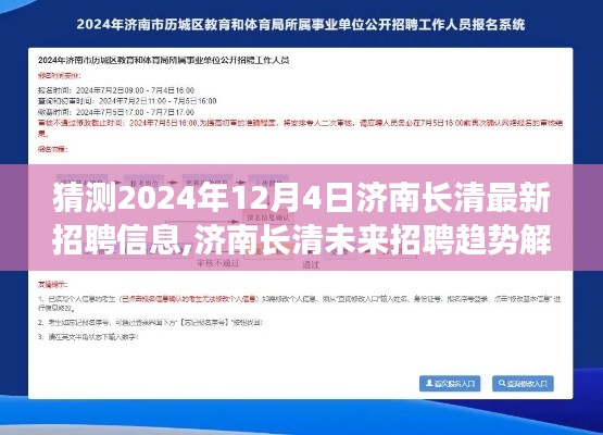摘要:,,本文将分析济南长清未来的招聘趋势,并猜测2024年12月4日的最新招聘信息。文章将探讨未来招聘市场的变化,包括行业发展趋势和人才需求变化等。提供获取最新招聘信息的步骤指南,帮助求职者及时获取招聘信息并做好准备。本文旨在帮助求职者了解济南长清招聘市场的现状和未来趋势,以便更好地把握就业机会。