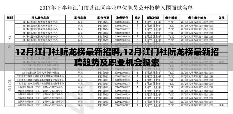 随着冬季的脚步渐近,12月的江门杜阮龙榜地区招聘市场迎来了新的机遇与挑战,本文将为您深入解析当前招聘市场的主题,带您了解最新的职业招聘信息,并探讨背后的趋势和发展前景。