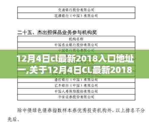 摘要:关于12月4日CL最新2018入口地址一的探讨与观点阐述,该入口地址是近期网络上广泛传播的热门话题。由于涉及到网络安全和隐私保护等方面的问题,建议用户谨慎对待此类链接,避免不必要的风险。也需要注意保护个人信息和网络安全,不要轻易点击不明来源的链接。