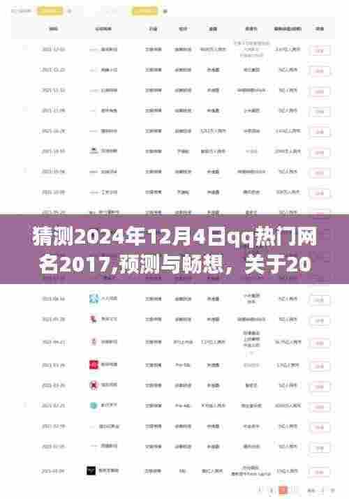 随着互联网的普及和社交媒体的盛行,QQ作为一款经典的社交软件,其用户网名的流行与变迁成为了观察时代文化变迁的一扇窗口,当我们站在时间的节点上,尝试猜测2024年12月4日QQ上的热门网名时,不禁引发诸多热议,本文将围绕这一主题,探讨未来QQ网名的发展趋势,并阐述作者的观点。