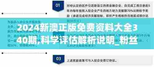 在现代社会,科学技术是推动发展的关键力量,新澳免费资料大全第340期中的科学评估解析说明扮演了至关重要的角色,通过对科学研究成果的深入评估,我们得以理解其背后的原理和应用,为未来的研究和实践奠定坚实的基础,这种评估不仅对于专业人士具有指导意义,对于普通大众来说,也是提高科学素养的关键途径。