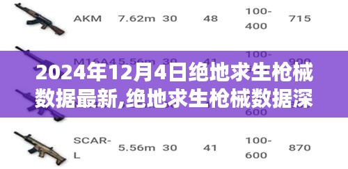 摘要:在最新发布的绝地求生枪械数据深度解析报告中,涵盖了截至2024年12月4日的最新枪械数据。报告详细测评了绝地求生游戏中的各类枪械性能,包括射击精度、射速、伤害值等关键参数,为玩家提供了全面的枪械性能参考。这份报告有助于玩家更好地了解游戏内枪械的特点和优势,从而做出更明智的选择和配置。
