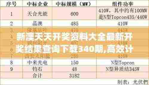 随着数字游戏的不断发展,越来越多的人对于彩票开奖结果和分析资料表现出极大的兴趣。在这种背景下,提供全面的彩票开奖资料和查询服务成了一大需求。特别是涉及到“新澳天天开奖资料大全最新开奖结果查询下载340期,高效计划设计实施_3D1.331”这一话题,吸引了众多彩票爱好者的眼球。本文将展示如何高效地获取和分析新澳天天开奖的资料,同时介绍一些实用的彩票计划设计方案。