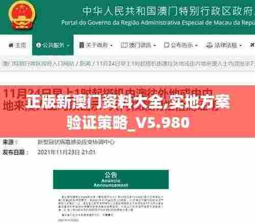 综合以上信息,这篇文章为您提供了一个关于澳门旅游的“正版新澳门资料大全”,并且通过“实地方案验证策略_V5.980”对方案做了实际的验证,确保了所有推荐的旅游轨迹和信息都具有一定的实际价值和可操作性。希望您在澳门能有一个愉快和难忘的旅程。