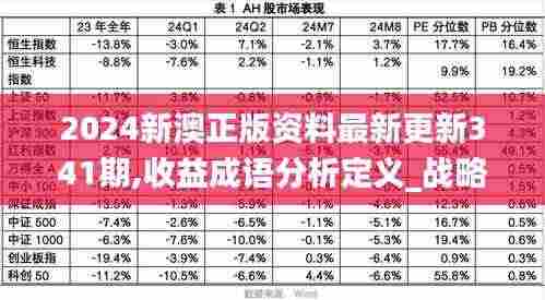 随着科技的飞速发展与信息时代的到来,情报的获取和更新已成为商业竞争和个人成长的关键因素,2024年,《新澳正版资料最新更新341期》应运而生,为追求最新资讯和深入分析的学者、分析师和决策者提供宝贵资源,第341期资料涵盖广泛的数据和信息,旨在为读者提供详尽的战略参考,以适应不断变化的市场和信息环境,本期资料不仅注重信息的时效性,更深入挖掘了收益成语分析的定义,帮助用户在投资决策中把握机遇,回避风险。