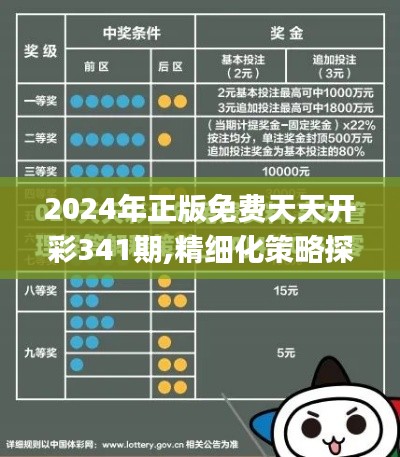 随着博彩行业的迅速发展,彩票已成为现代生活中不可或缺的一种投资方式。尤其在数字彩领域,如何一步一个脚印地挖掘潜在的投资空间,精准把握彩票市场脉络,成为广大彩民颇为关心的话题。2024年正版免费天天开彩341期,无疑是一个很好的学习实践平台。本文将围绕“精细化策略”展开探讨,旨在帮助广大彩民找到适合自己的投注方案,提高中奖概率,实现资金的稳健增长。