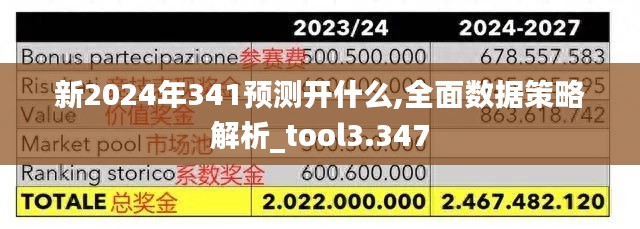 全面数据策略对于“新2024年341预测开什么”具有重要意义。“tool3.347”作为这一策略中的核心工具,不仅提升了数据处理能力,也为预测领域的创新和发展提供了有力支持,随着技术的不断进步和数据量的持续增长,我们可以期待“新2024年341预测开什么”将带来更加精准和有价值的预测结果。