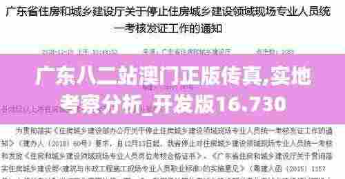 在我们日益全球化的世界中,各个地区之间的合作和交流不断加深,广东作为中国最重要的经济省份之一,其在经济发展上拥有举足轻重的地位。本次广东八二站澳门正版传真实地考察分析报告,旨在深入探讨广东与澳门两地在战略合作关系,并基于实地考察的结果提供一个详尽的开发版16.730方案,以加强两地的交流与合作,促进双方共同发展。