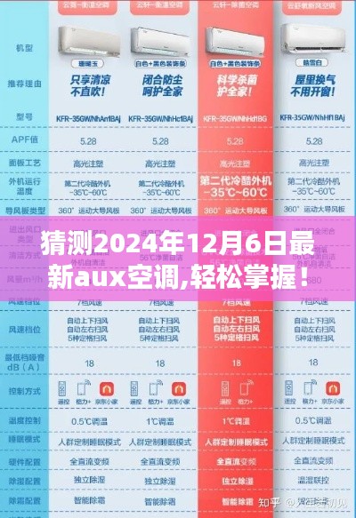 随着科技的进步和人们生活品质的提升,空调已经成为我们生活中不可或缺的一部分,作为市场热门品牌之一的Aux空调,在技术和品质上不断创新,满足消费者的各种需求,本文将指导初学者和进阶用户如何预测并选购2024年最新的Aux空调,让你轻松掌握选购技巧,享受舒适生活。