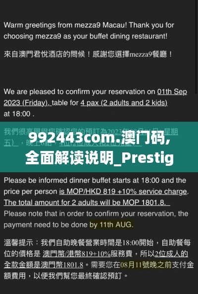 在互联网时代,在线娱乐平台成为了休闲放松的重要方式之一。而992443com.澳门码作为澳门地区的著名在线平台,受到了广泛的认可和追捧。这个平台以其专业、快速且全面的服务赢得了用户的信赖。同时,Prestige7.368是一个与该平台相关联的术语,它涉及到技术和用户体验等多个方面,是理解平台特色的关键之一。本文旨在对992443com.澳门码进行全面的解读说明,以及对Prestige7.368进行详细阐述,让读者能够深入了解这两个术语的内涵和实际意义。