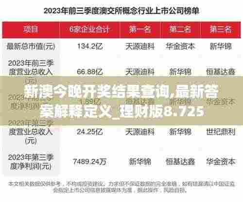 而“理财版8.725”可能指代一种财务规划软件或理财工具,能够帮助用户对个人财务进行管理,包括预算规划、投资分析、财务目标设定等,在新澳今晚开奖结果查询的背景下,这款工具可以帮助用户将潜在的中奖奖金纳入个人的理财规划中,实现财务目标。