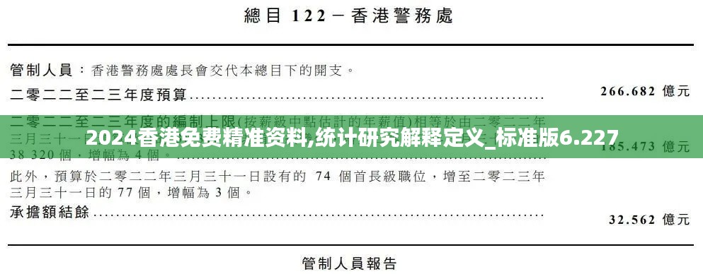 随着标准版6.227的推出,“2024香港免费精准资料”的提供迈入了新的阶段,这一版本的资料集不仅包含了最新、最准确的统计数据,还强调了数据的标准化和可用性,标准化确保了数据格式统一、定义一致,从而方便用户进行跨领域、跨时间的比较分析。
