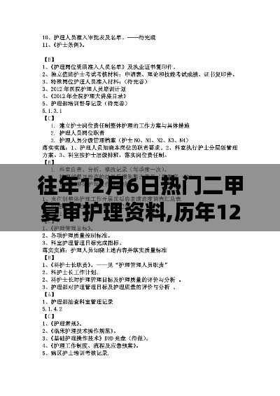 随着医疗行业的不断进步与发展,护理工作的质量与水平日益受到社会各界的关注,每年的医疗评审,特别是关于护理领域的复审,都是对医疗机构护理工作的一次全面检验,本文将重点聚焦于历年12月6日热门二甲复审护理资料,对其中几个关键要点进行深入探讨。