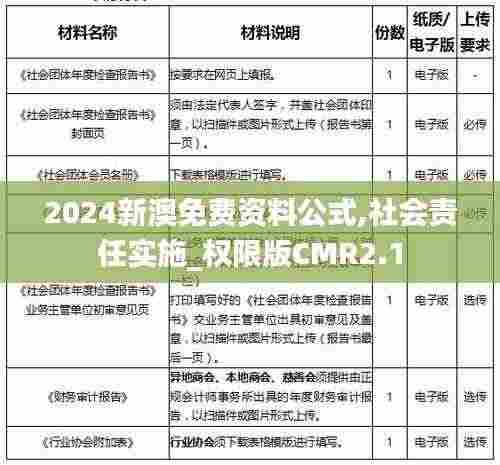 2024新澳免费资料公式是指一套科学的、系统化的社会责任管理工具,其主要目的是帮助企业在实施社会责任的过程中进行有效的监督和评估。这一公式结合了社会责任的各个维度,包括环境保护、社会贡献和经济效益等,确保企业在追求利益的同时,不忽视社会的需要。