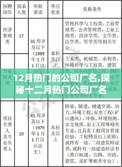 这次探秘十二月热门公司厂名之旅让我们收获颇丰,我们不仅欣赏到了美丽的自然风光,还体会到了追寻内心宁静的重要性,让我们带着这份轻松愉悦的心情和鼓舞人心的力量,继续前行,探索更多的美好与奇迹。
