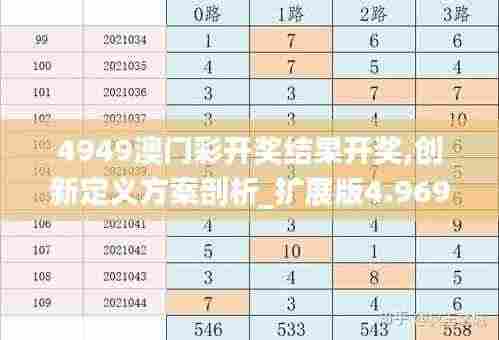 为了适应新时代的需求,澳门政府对“4949澳门彩”的开奖结果提出了创新定义方案,这一方案不仅考虑了技术的更新换代,还充分考虑了如何更好地服务于彩民,提高彩票的吸引力,创新方案包括采用更先进的开奖技术、引入多元化的开奖形式以及实施更为灵活的开奖时间和频率,以优化用户体验。
