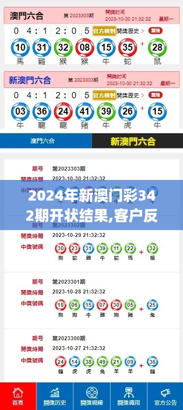 在澳门这个娱乐业繁荣的地区,彩票业一直占据重要地位,为了及时反映市场变化,提升客户满意度,确保游戏的公平性以及加强监管,澳门特区政府下属的彩票监管机构定期发布彩票开奖结果、客户反馈以及相关政策文件,本文将深入分析2024年新澳门彩第342期的开奖结果,并对客户反馈进行全面分析与落实,旨在促进澳门彩票业的持续健康发展。