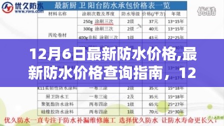摘要:本文提供了关于最新防水价格的查询指南,适用于初学者和需要了解防水价格的人群。文章介绍了在12月6日查询防水价格的最新信息,并提供了全面的进阶攻略,帮助读者了解防水价格市场动态,以便做出明智的购买决策。