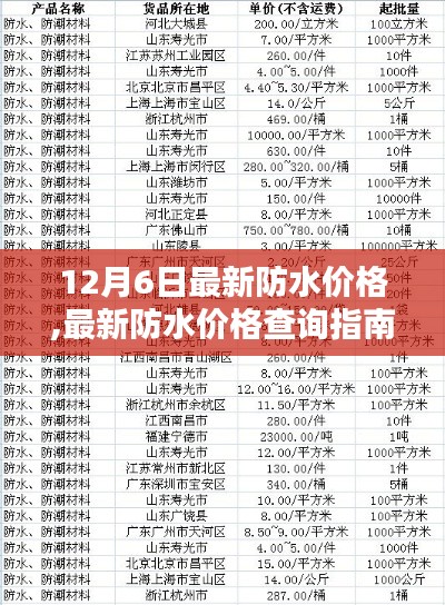 随着雨季的到来和家居装修的热潮,防水材料的选购成为许多家庭关注的焦点,本文将指导初学者及进阶用户如何在12月6日获取最新的防水价格,并了解如何根据需求选购合适的防水材料,本指南将详细阐述每一个步骤,确保读者能够顺利完成这项任务。