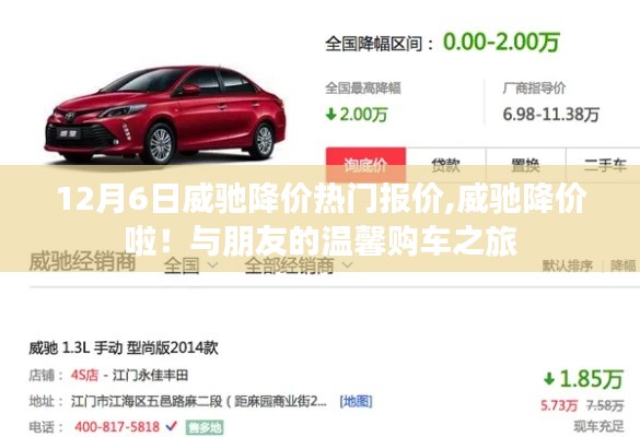 摘要:在12月6日,威驰汽车推出降价优惠活动,热门车型报价更具吸引力。一次与朋友共度的温馨购车之旅正式开启。此次降价活动为购车者提供了更多选择,同时也带来了更多实惠。