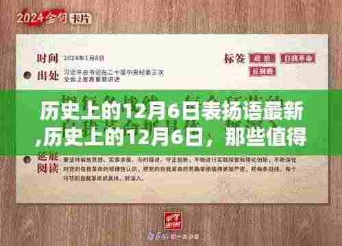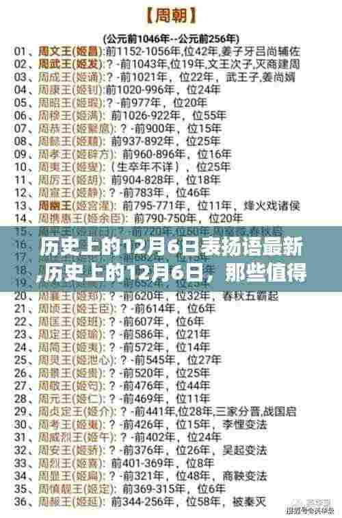 随着日历翻页,我们迎来了每年的12月6日这一天,这一天不仅仅是一个普通的日子,它在历史的长河中承载着诸多值得纪念和表扬的事件,本文将带您回顾历史上的这一天,那些闪耀的瞬间与激励人心的名言,让我们一同感受那些值得表扬的力量。