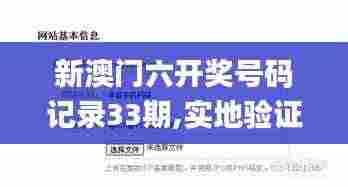 在澳门特别行政区,博彩业是其经济的重要组成部分之一。为了保持博彩业的透明度和公平性,澳门政府一直积极地发布各种政策文件,包括对博彩结果的记录和验证。本文将针对特别关注的“新澳门六开奖号码记录33期”,详细介绍实地验证策略方案,确保所有开奖数据的准确性和可靠性,并为澳门博彩业的健康可持续发展提供政策支持。