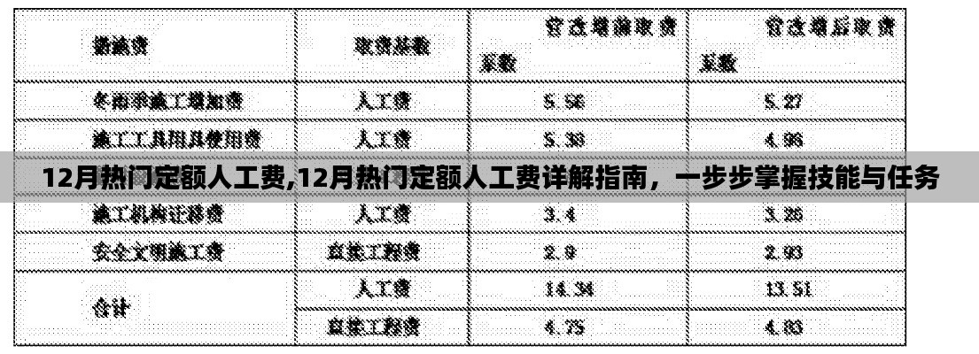通过本文的详细介绍,初学者和进阶用户应已了解并掌握12月热门定额人工费的基本概念和计算方法,在实际操作中,不断积累经验,提高计算的准确性,为工程项目的顺利完成打下坚实的基础,希望本文的指南能帮助读者更好地理解和应用定额人工费的相关知识。