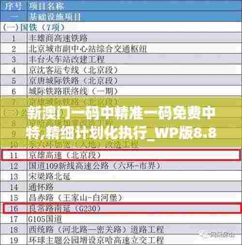 近年来,随着澳门经济的快速发展,面临着各种挑战和机遇。为了更高效率地执行一系列政策,澳门政府参考国际经验并结合本地实际情况,制定了"新澳门一码中精准一码免费中特,精细计划化执行_WP版8.885"。这份政策文件精准定位澳门发展的核心需求,将通过先进的技术手段和精细化的管理措施,推动澳门实现更高效的发展目标。