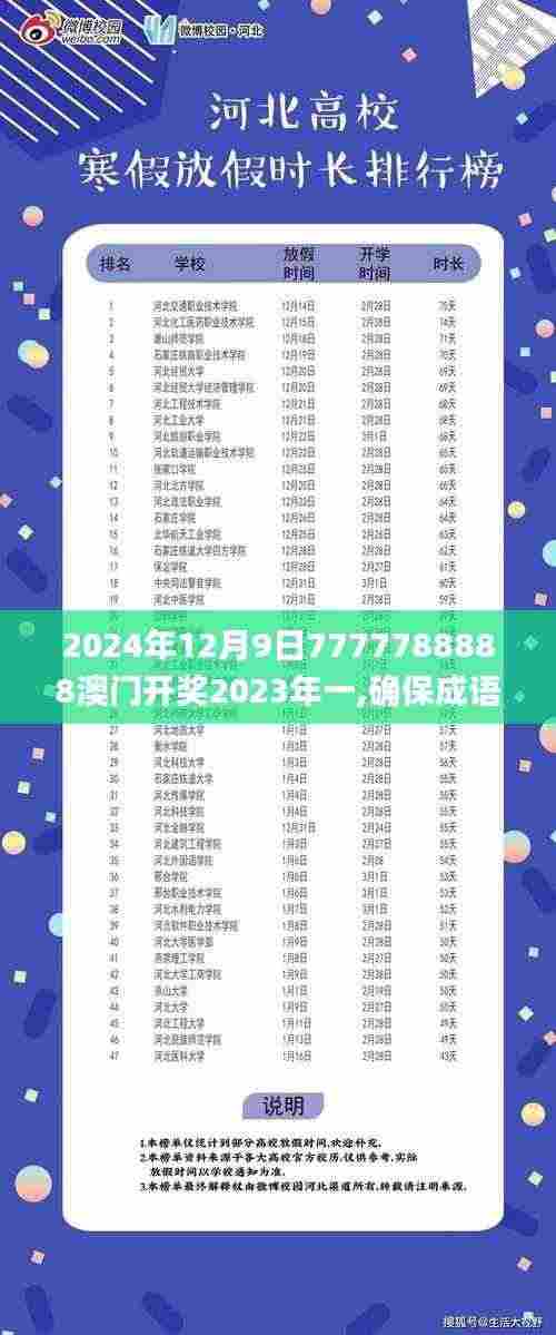 成语作为中华民族的文化瑰宝,是传承和发扬民族优秀传统文化的重要载体。在澳门这样一个充满活力和多元化的城市中,成语不仅仅是语言智慧的结晶,更是解读历史、文化、心理、伦理和哲学的重要工具。为进一步加强对澳门成语文化的研究和应用,特别是在2024年12月9日7777788888澳门开奖这一重要时刻,我们通过政策文件的形式,以此提升澳门成语的社会影响力和传播力。
