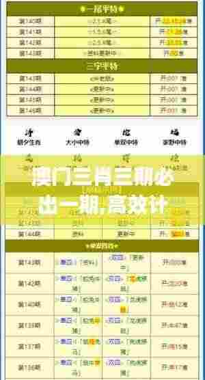 澳门,作为中国的一个特别行政区,其博彩业享誉全球,独特的地理位置和政策优势使其成为全球旅客的旅游热点。澳门政府为了进一步规范和发展博彩业,提出了"澳门三肖三期必出一期,高效计划设计"的新策略。这一策略旨在通过科学的规划和高效的运营,确保澳门博彩业的健康发展,吸引更多的游客,促进澳门经济的多元化发展。以下是对该策略的详细解读。