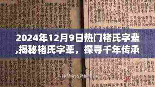 摘要:在2024年12月9日,关于褚氏字辈的话题备受关注。本文将揭示褚氏字辈的千年传承,探寻其背后的历史和文化内涵。通过本文,读者可以了解到褚氏字辈的重要性和热门内容,一览褚氏字辈的丰富内涵。