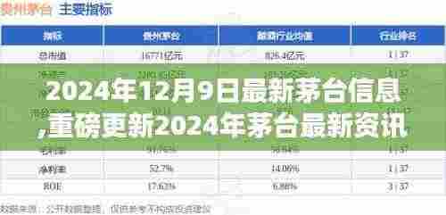 摘要:最新茅台资讯,重磅更新!在2024年12月9日,茅台发布了一系列最新动态。这些资讯涵盖了茅台的最新发展、产品更新以及市场策略等重要内容。本文为您一网打尽最新茅台信息,带您了解茅台的最新动态和揭秘其未来发展动向。