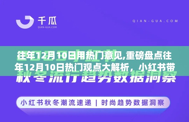 摘要:,,小红书带你回顾往年12月10日的热门观点,深度解析时代潮流。通过收集和分析广泛受到关注的意见,小红书为大家呈现了一场重磅盘点。让我们一起洞悉当下热门话题,了解最新的流行趋势。不容错过的时尚资讯,尽在小红书的年度盘点中。
