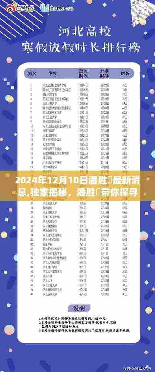 随着潘胜燊的最新消息在2024年12月10日的揭晓,一场别开生面的探索之旅即将展开,我们将跟随潘胜燊的脚步,踏上一场寻找隐藏在小巷深处的特色小店的冒险,这里不仅有令人陶醉的环境,更有别具一格的惊喜等你来发掘,让我们一同启程,感受这场活泼有趣的小店探索之旅吧!