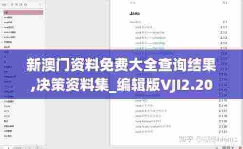 新澳门资料免费大全查询结果,决策资料集_编辑版VJI2.20