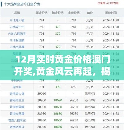 亲爱的朋友们,今天我们来聊聊黄金,黄金作为贵金属之王,一直以来都是人们追逐的对象,特别是在澳门这座繁华的城市,黄金市场更是风起云涌,本文将带大家深入了解澳门黄金价格的奥秘,特别是即将到来的12月实时黄金价格及澳门开奖情况,不过,在此之前,我们需要明白投资黄金的风险和合法性,请大家谨慎阅读,切勿触碰法律红线。
