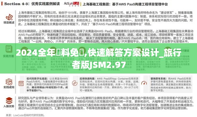 随着旅游行业的快速发展,越来越多的旅行者开始寻求更为高效的旅游规划工具。在这个背景下,“2024全年资料免费,快速解答方案设计_旅行者版JSM2.97”应运而生,成为了众多出行者的首选。本文将详细探讨这一工具的特点、优势以及如何最大化利用这一资源,帮助广大旅行者更好地规划他们的行程。