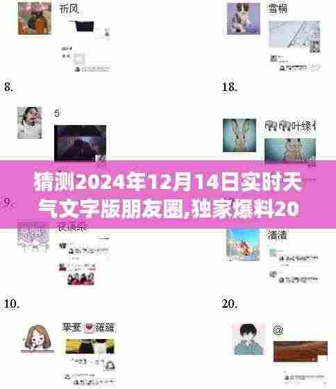 独家爆料!探秘2024年12月14日天气,小巷深处的独特风味等你来发现。朋友圈实时天气预报,带你领略未知的魅力。隐藏版特色小店大揭秘,美食、氛围、人情味一网打尽!快来一起感受这神秘而诱人的冬日小巷之旅吧!