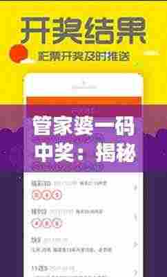 听到“管家婆一码中奖”,你可能会想到多彩游戏中所谓的“一码中”,或是普遍认知上的一般投注策略,毫无疑问,这的确是众多多彩玩家的梦想目标,通过高效的“管家婆一码中奖”策略,便能获得梦寐以求的至尊殊荣。