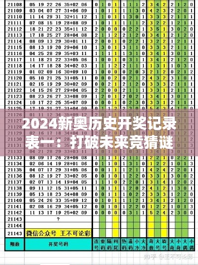 2024新奥历史开奖记录表一:打破未来竞猜谜团