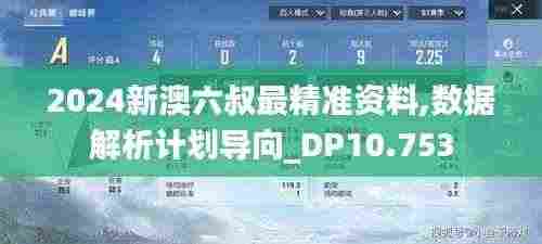 在这个大数据时代,信息的精准性成为了决定政策成功与否的关键因素之一,澳门作为一个国际化的城市,紧跟时代步伐,特区政府制定了一系列新的政策,2024新澳六叔最精准资料,数据解析计划导向_DP10.753”政策文件尤为引人注目,这一文件将为澳门的持续发展、城市治理及公共安全等方面提供重要的数据支持和政策指导。