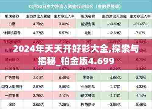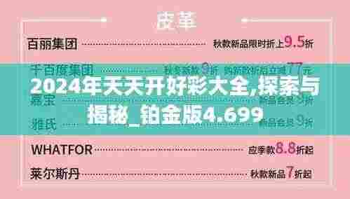 澳门的彩票行业经常举办各种促销和活动,以增加彩民的购彩热情。了解这些活动和优惠,将使您在购彩过程中获得更多的利益。2024年天天开好彩大全,探索与揭秘_铂金版4.699总结了澳门彩票的最新活动和优惠信息,让您不错过任何一个获得额外福利的机会。
