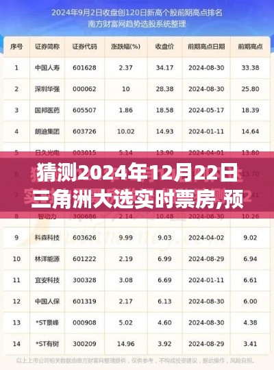 随着科技的进步和大数据时代的到来,预测未来趋势已经成为一项重要的技能,本文将指导初学者和进阶用户如何猜测2024年12月22日三角洲大选的实时票房,帮助读者掌握预测的方法和技巧。