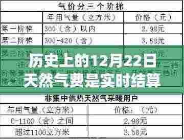 关于历史上12月22日天然气费是否实时结算的问题,需要具体了解历史背景和当时的结算方式。聚焦该日期,天然气费用的结算方式可能因地区、时间等因素而有所不同。关于历史天然气费用结算方式,针对特定日期如12月22日,天然气费用是否实时结算需考虑历史背景和实际情况。目前无法确定具体答案,需要进一步研究相关资料和历史记录。