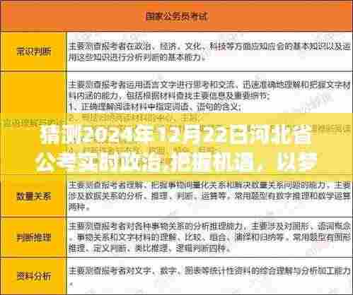 摘要:,,预计2024年12月22日河北省公考将涉及实时政治内容,考生需把握机遇,积极备考。此次公考将是一场以梦为马的奋进之旅,考生需紧密关注实时政治动态,深入了解国家政策及地方发展,为考试做好充分准备。这是一次展现考生政治素养和应变能力的机会,也是一次对河北省公务员队伍选拔的重要时刻。