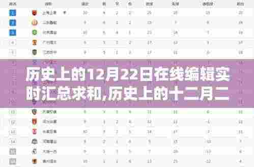 历史上的十二月二十二日是一个值得铭记的日子,这一天见证了互联网和实时编辑汇总技术的诞生与发展,推动了人类社会的进步,在这个数字时代,我们每天都在创造历史,而这一天则是历史与现实交汇的见证,让我们铭记这一天,铭记它所承载的历史与未来。