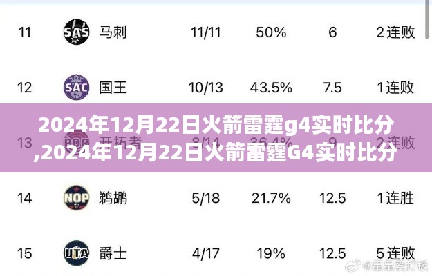 获取2024年12月22日火箭雷霆G4的实时比分其实并不复杂,通过选择合适的渠道,遵循上述步骤,您将能够轻松获取比赛的最新进展,无论您是初学者还是进阶用户,都可以按照本指南顺利完成任务,希望您在享受比赛的同时,也能感受到体育带来的乐趣!