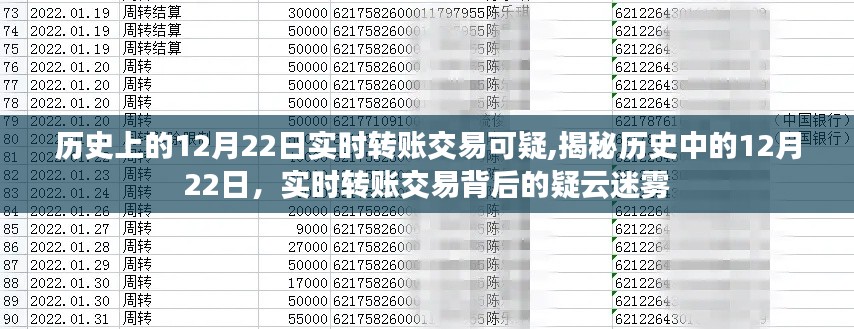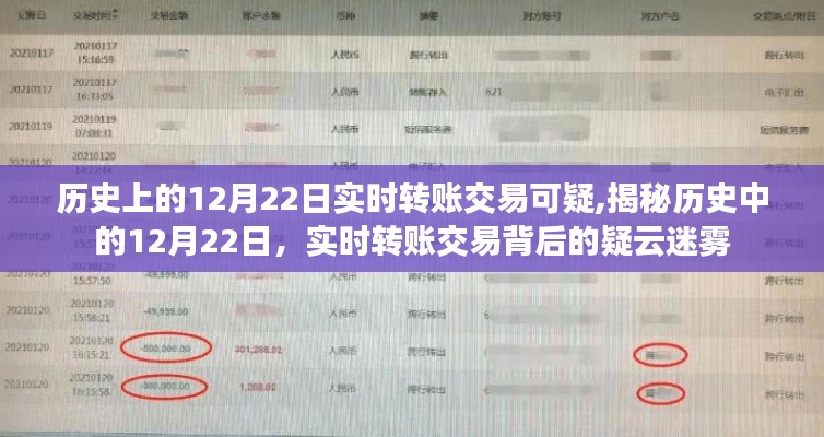 摘要:本文将探讨历史上12月22日发生的实时转账交易事件,揭示这一日期背后所隐藏的疑云迷雾。通过对相关事件的梳理和分析,揭示其中的真相和疑点,为读者提供一个深入了解该事件的机会。