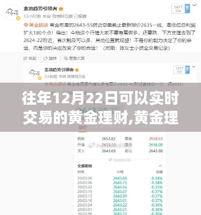 黄金,作为一种贵金属和避险资产,历来受到投资者的青睐,随着全球经济的波动和金融市场的不确定性增加,黄金理财逐渐成为一种重要的投资手段,每年的十二月二十二日,由于临近年终,市场参与者增多,交易活跃度提升,这一天成为黄金理财市场的关键节点。