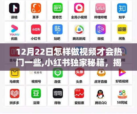 在小红书上制作热门视频,首先要了解当前的热门趋势,通过关注热门话题、流行元素以及时事热点,我们可以把握时机,创作出符合观众口味的视频内容,在12月22日这个特殊的日子里,我们可以围绕节日主题,如圣诞节、冬季活动等元素进行创作,吸引更多观众的关注。